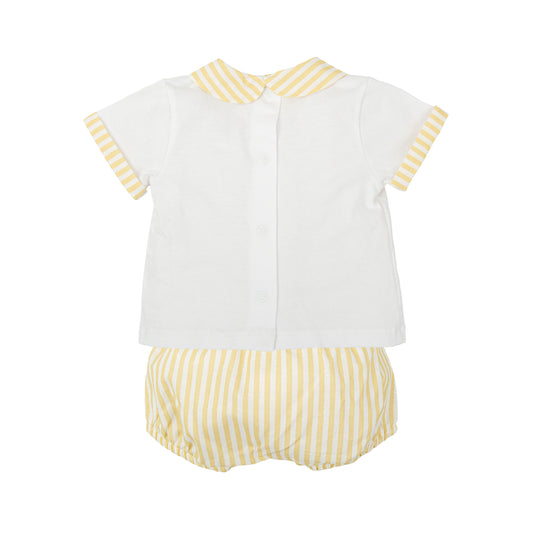 Raiz Baby Boy Two-Piece Cotton Set – Yellow Stripes | Made in Spain