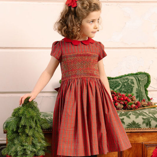 Marguerite Red Tartan Smocked Dress with Matching Bloomers – Holiday Collection
