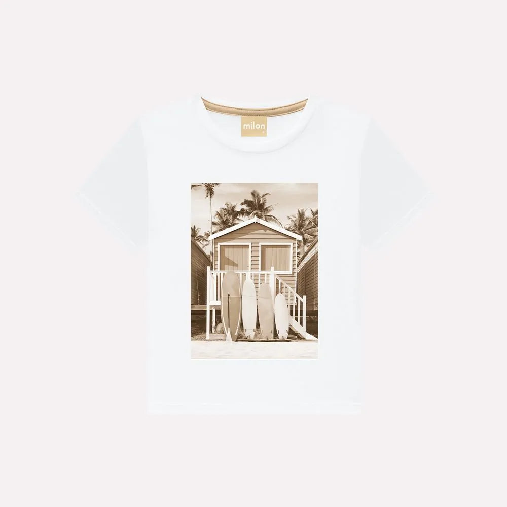 Boys' Tropical Surfing Bermuda Set – Khaki & White | Milon (2–14 Years)