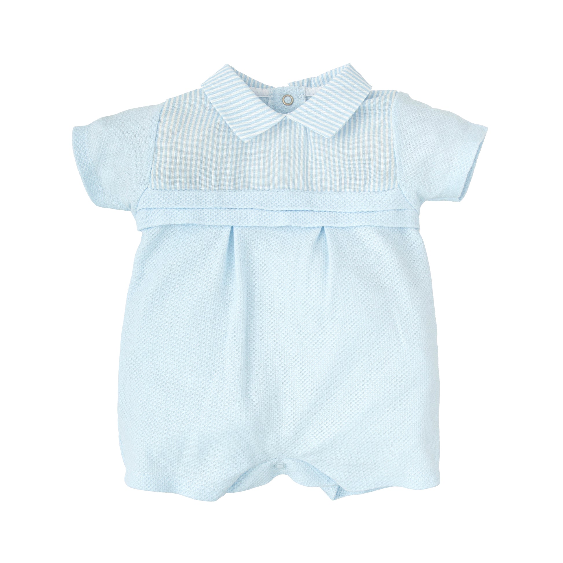 Designed with breathable, lightweight cotton, it keeps baby cool and comfortable throughout the day. The snap button closure makes diaper changes quick and easy, while the tailored silhouette adds a polished look perfect for photos, celebrations, or summer outings.
