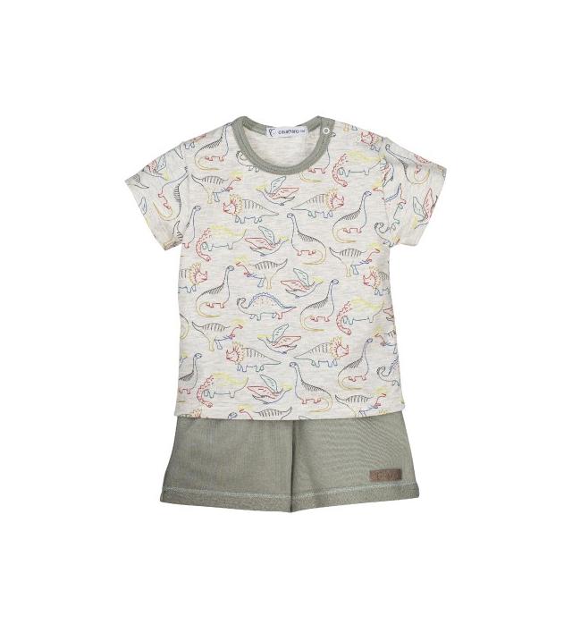 Unleash your little one's inner explorer with the Dinosarious Set! This adorable set includes a short sleeve t-shirt and shorts, both featuring a fierce dinosaur pattern. Made with soft and breathable cotton, it's perfect for playtime and made in Spain for guaranteed quality. Prepare for a roaring good time!