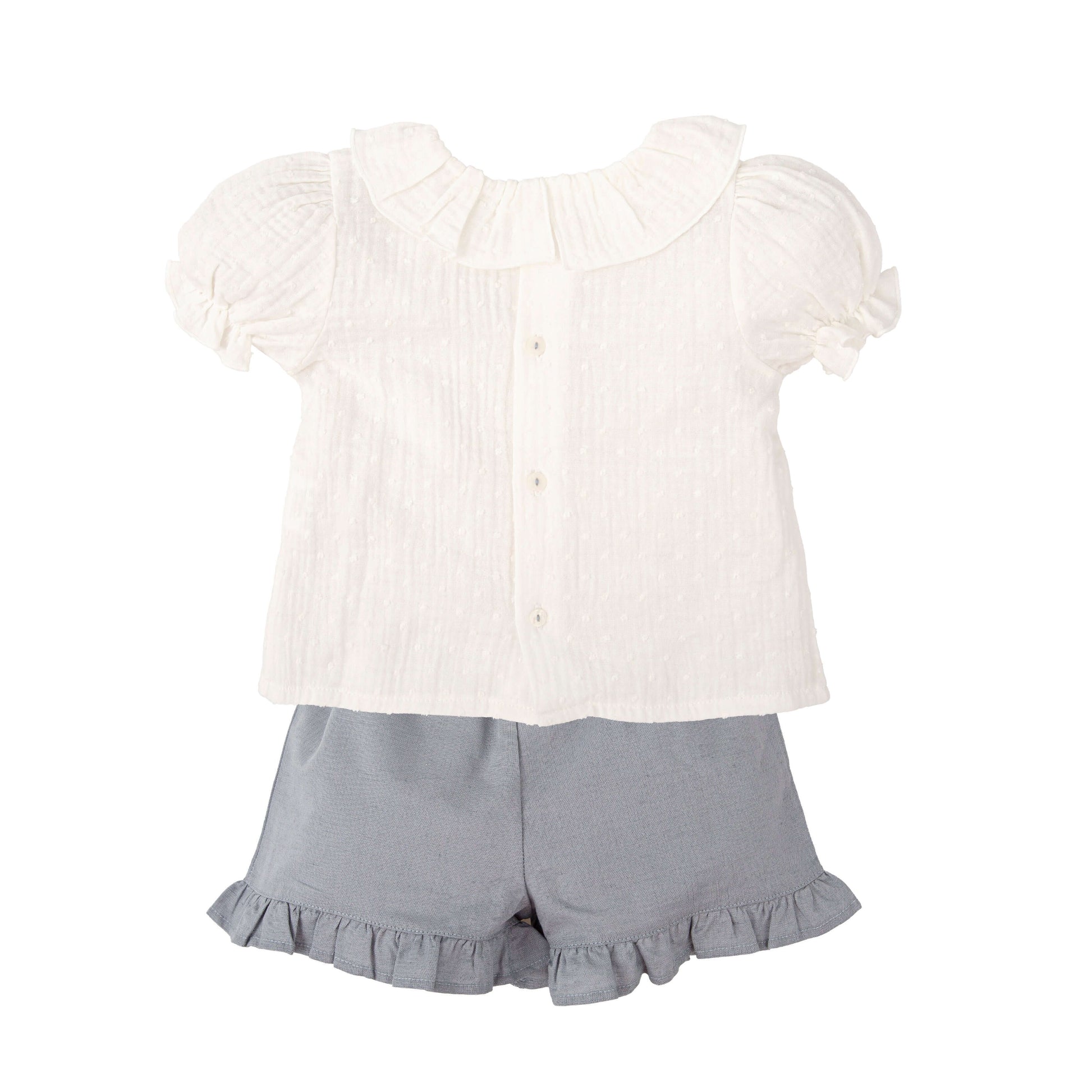Introducing the perfect addition to your little girl's wardrobe - the Ensueño Woven Set! Crafted in Spain from 100% cotton, this set includes a stylish shirt and comfortable shorts, suitable for infants to young girls. Elevate her style with the Ensueño Collection by babidu.